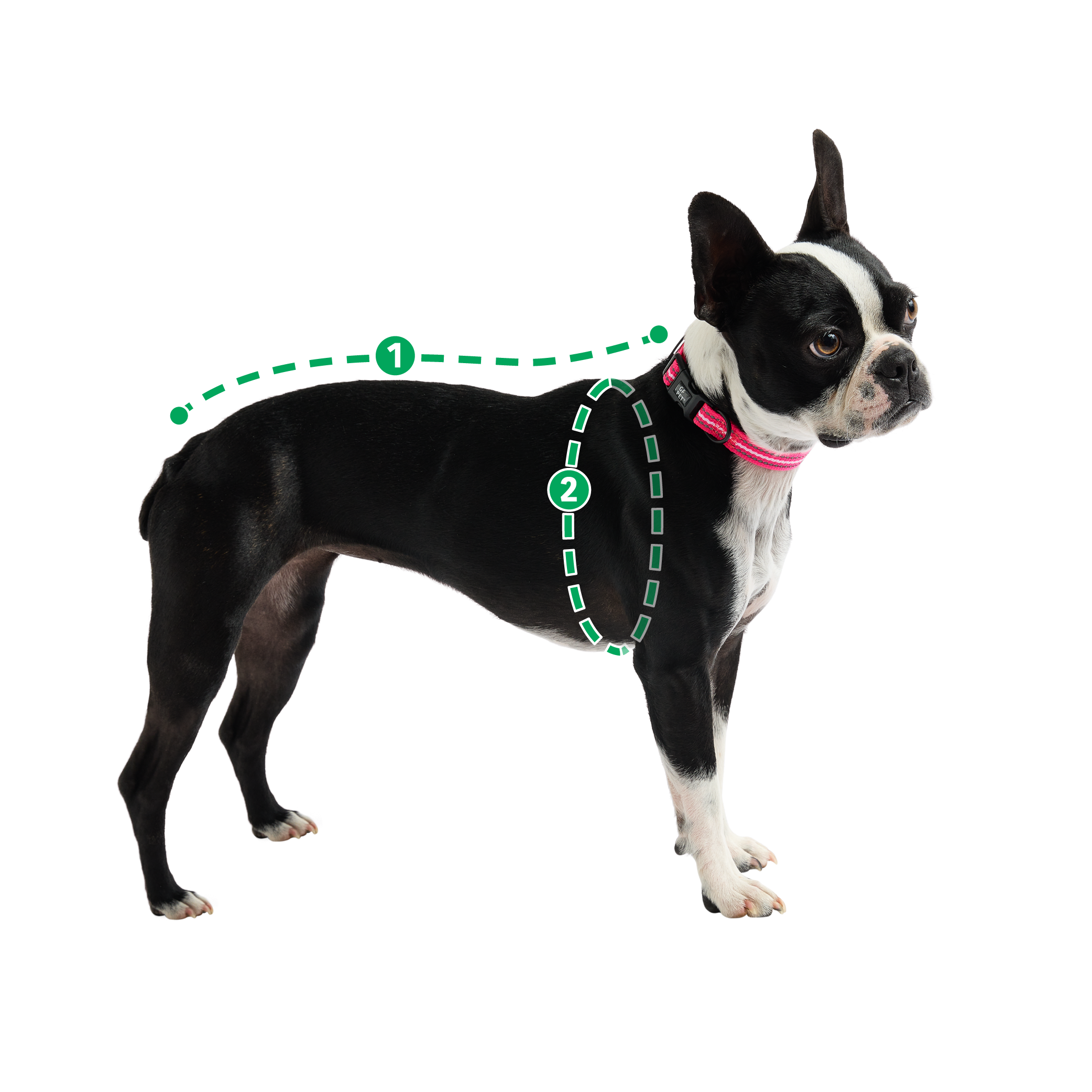 Elija la combinación más cercana de medidas para que coincida con la forma única de su perro. En caso de duda, elija el tamaño más grande.